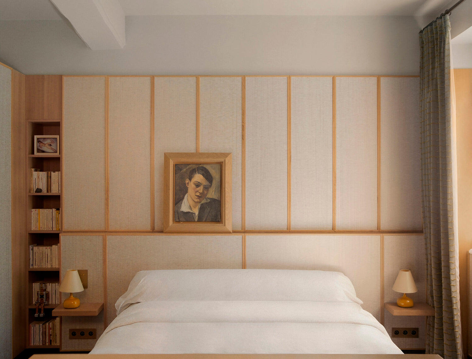 This Parisian apartment, designed by architect Maxime Bousquet, isn’t about making bold statements with oversized art pieces. Instead, it embraces subtlety, with smaller artworks that let the rooms breathe and maintain balance. Pieces like a François Eberl portrait, casually placed above the bed, and a mushroom sculpture by Hamish Pearch, nestled into a custom nook, reward close attention.
