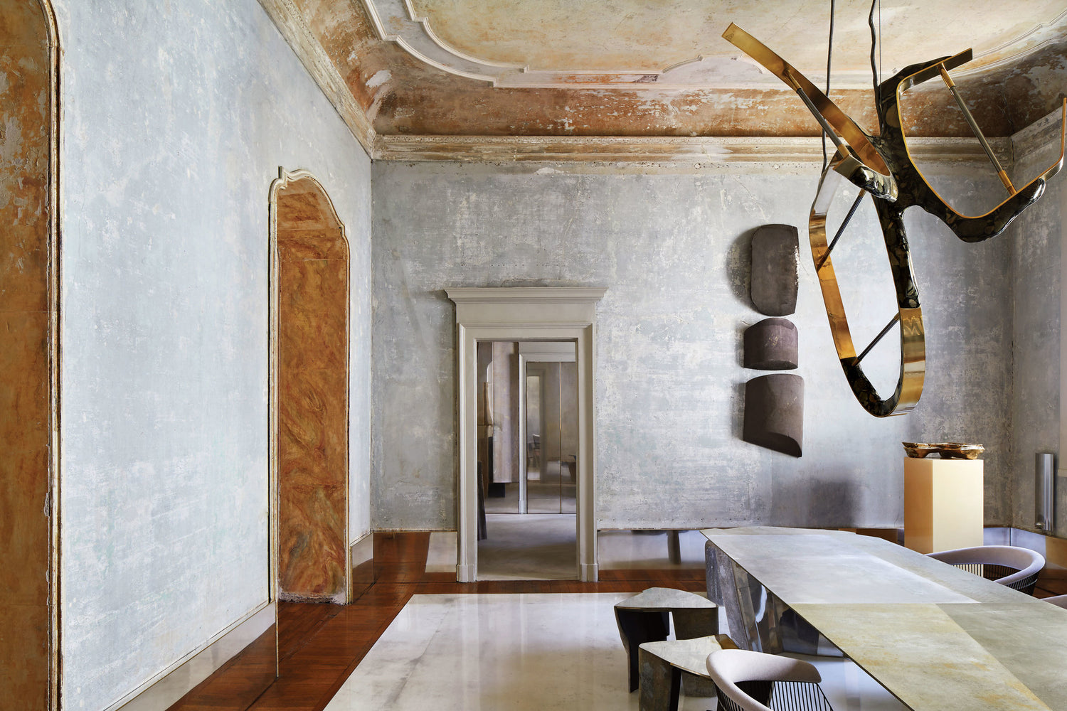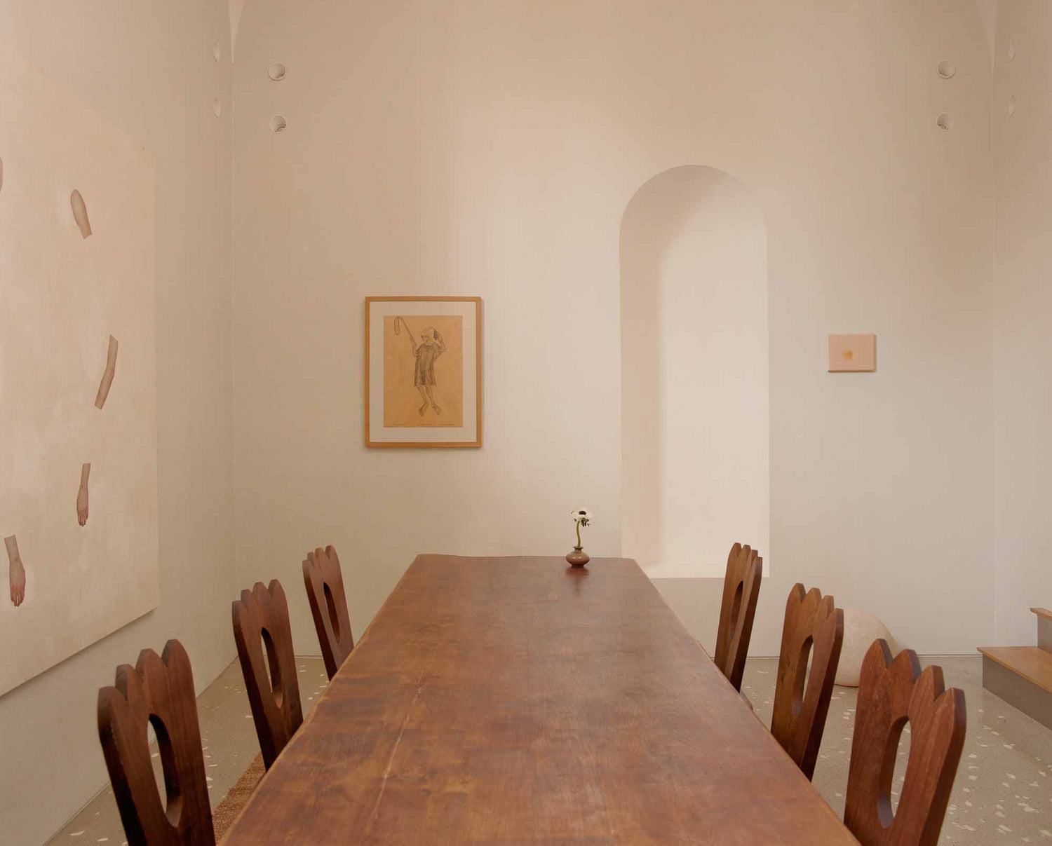 Vincenzo De Cotiis and his partner, Claudia Rose, spent two years renovating a 510 m² building from the early 18th century, originally constructed by local painter Antonio Digerini. Once a cloister and hotel, it now serves as a distinctive space where design is paramount and every detail is thoughtfully considered.
