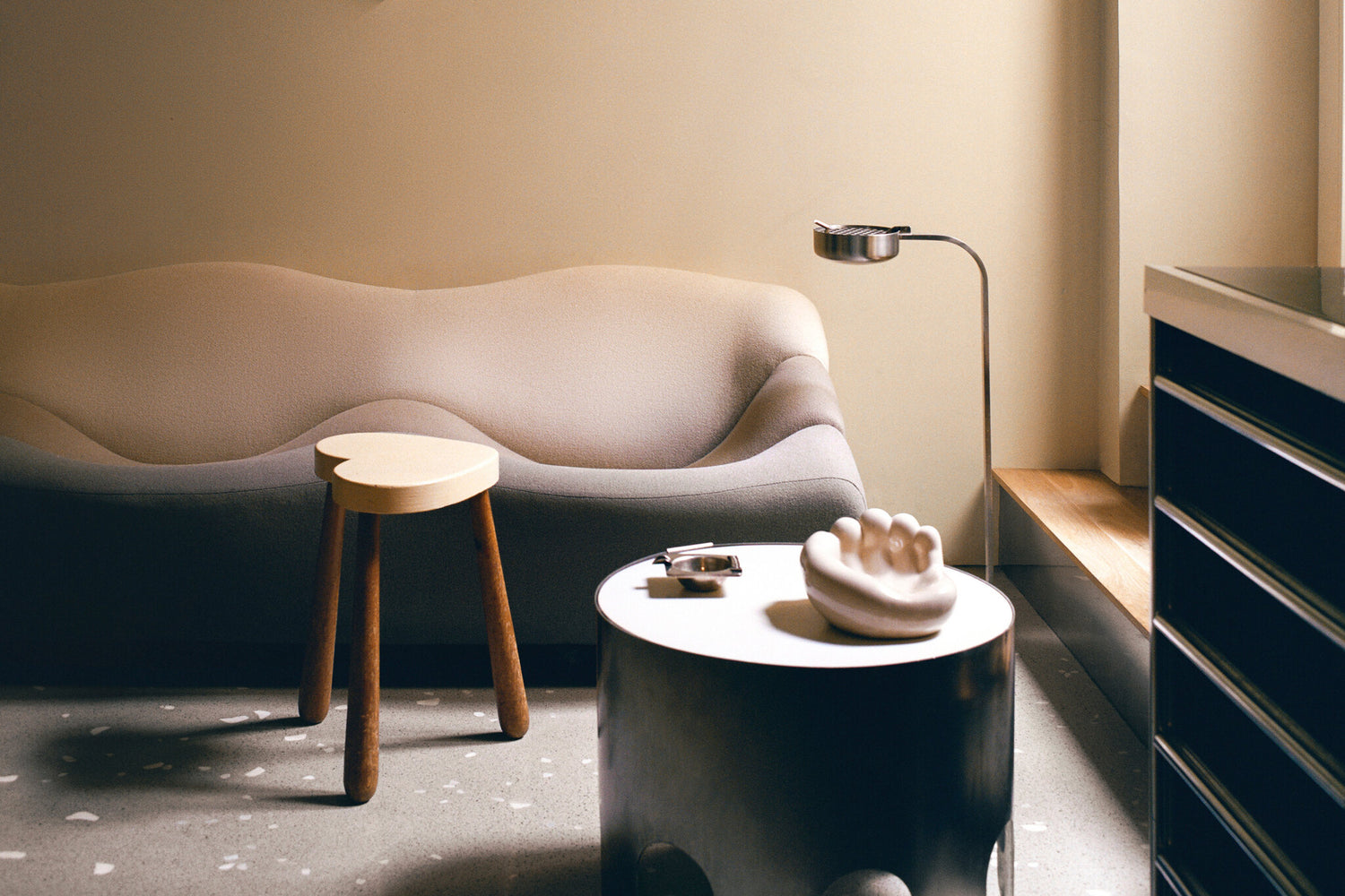 Art and function blend throughout the apartment, from Superpoly’s tentacle-like custom handles in the bedroom to André Cazenave’s rock-like floor lamps in the dining room. Bousquet’s greatest challenge was achieving flow between the distinct spaces, each with its own unique personality, yet he succeeded in creating a home that feels both cohesive and full of character.