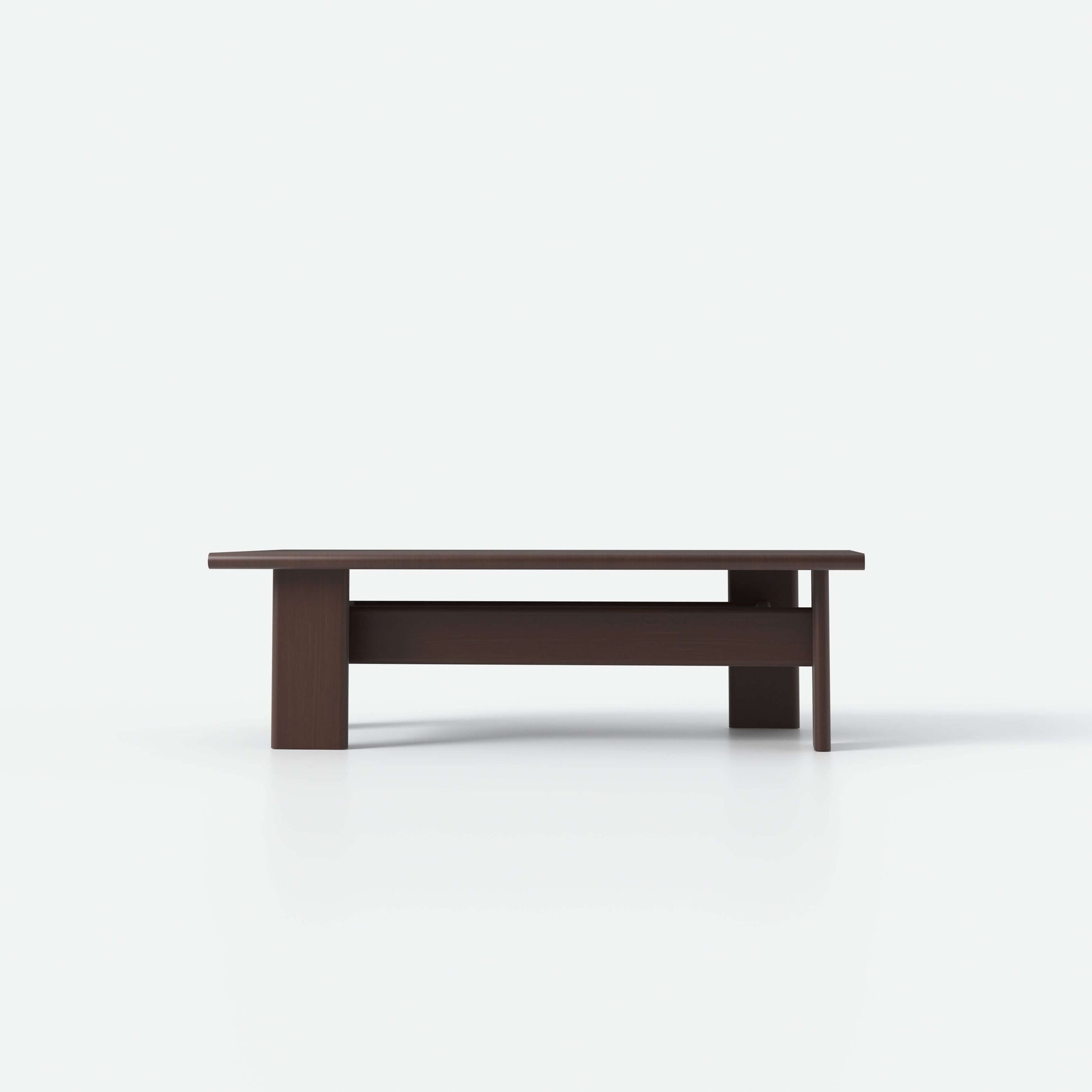 The Archipen Coffee Table 4 continues the sculptural design language of the Archipen Collection, achieving a refined minimalist geometry through the thoughtful intersection of its vertical and horizontal planes. This intentional architectural rhythm creates a balanced, airy composition with significant gravitas, where the utilization of negative space defines its elegance. As the collection's longest and lowest table (100 cm long, 30 cm high), its elongated rectangular silhouette is engineered to anchor large sofas and modular arrangements, acting as a crucial bridging element within the space for displaying curated items. Crafted from solid ash and a select ash-veneered top for lasting stability, the Archipen 4 is available in black-stained, brown-stained, and natural ash, or any RAL colour, ensuring seamless custom integration into sophisticated interiors.