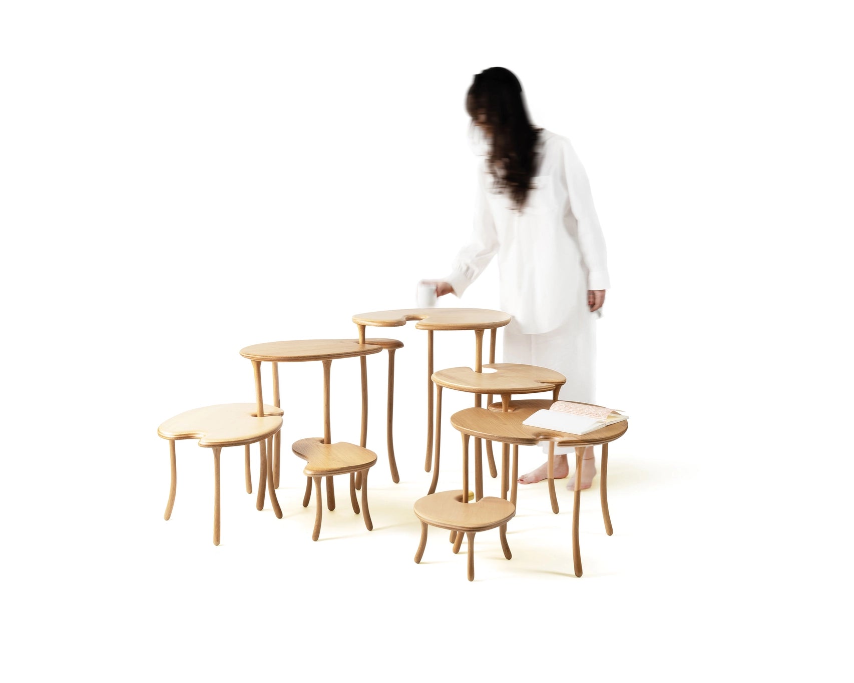 Experience the captivating artistry of the Orografie Tavo Table, a visionary creation by designers Giuliano-Fukuda. More than mere furniture, this exquisite collection of low tables is an invitation to personal curation and ever evolving elegance. Inspired by the organic grace of nature, the modular pieces, reminiscent of delicate leaves, can be freely combined and rearranged to compose unique, dynamic impressions within your space. This striking three piece set, featuring varying heights and lush wood finishes, or available in a sleek lacquered option transforms your living area into a personalized landscape. To own the Tavo Table is to embrace a design philosophy where serenity and spontaneous beauty meet, creating a refined focal point that continuously reflects your unique aesthetic vision.