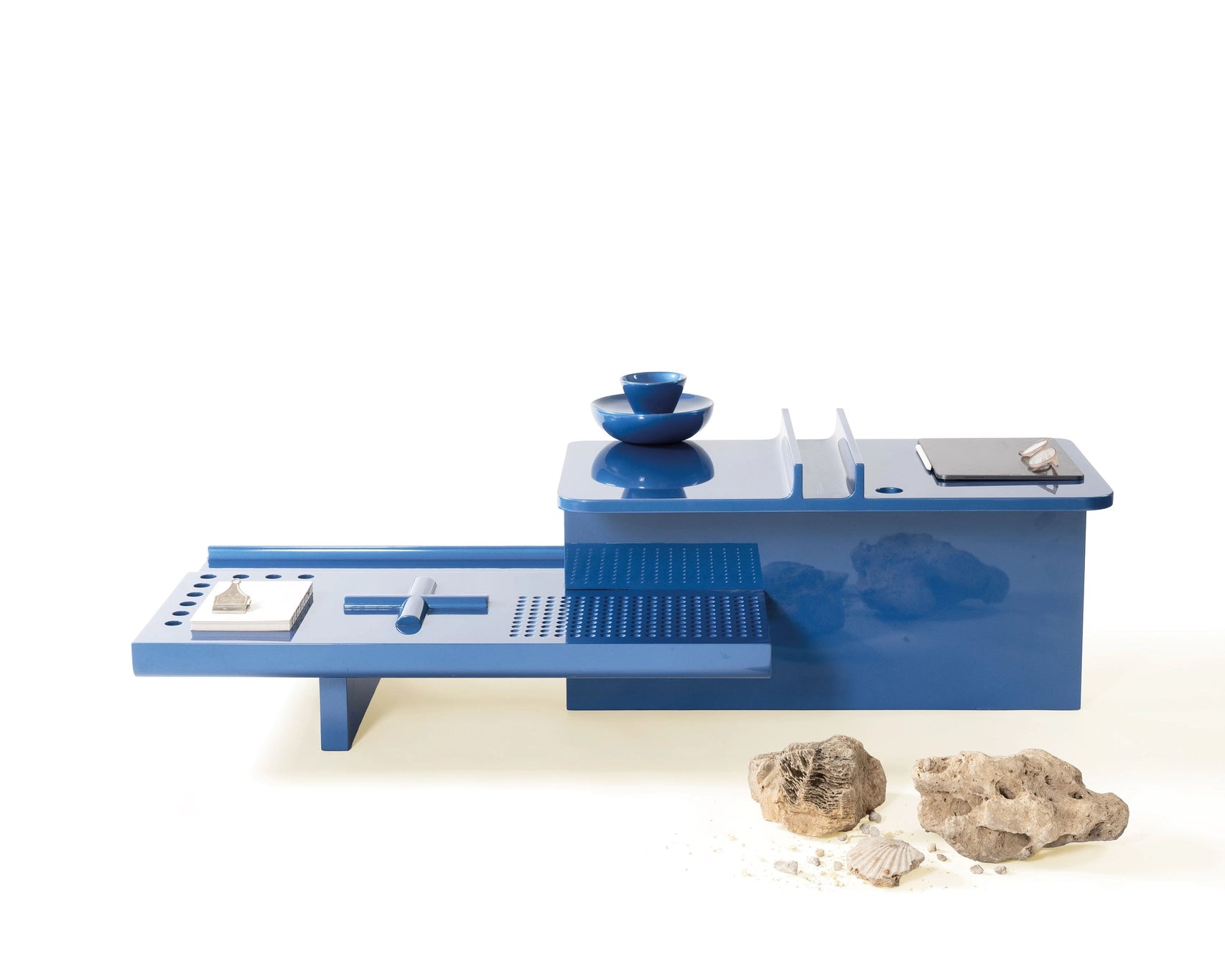 Embrace the enigmatic and sculptural form of the Orografie T1 and T2 Tables, a striking two piece design series meticulously conceived by Martinelli-Venezia. Drawing inspiration from the complex geometry of wooden foundry molds, artifacts defined by their ensemble of holes, bevels, and rigorous lines, these coffee tables offer a masterclass in architectural utility. Available in a commanding blue or vibrant red lacquer, each piece is entirely handcrafted of wood, functioning far beyond a simple surface. Their intelligently designed recesses, practical empty-pocket trays, and suggestive details encourage a curated interaction, gradually revealing their multiple potential functions from accommodating your creative endeavours to enhancing moments of leisure. Owning the T1 and T2 is to introduce a piece of functional art that seamlessly integrates high design with the intuitive way you live, elevating the ordinary into the beautifully orchestrated.